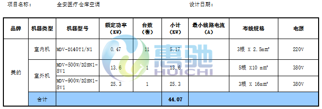 車(chē)間美的空調(diào)改造配置表
