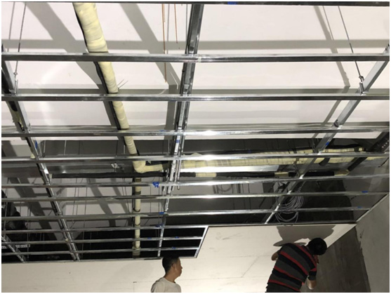 本展廳為敞開區(qū)域,空間內(nèi)沒有具體隔斷,因此在空調(diào)選型和分布位置上需要參考實際吊頂造型。本展廳原始層高為4.6米,主梁下為3.4米,現(xiàn)吊頂完成面層高為3米,頂內(nèi)層高較為充裕,我司建議使用風(fēng)管式空調(diào)放置在吊頂內(nèi),可以最大程度不影響美觀度。